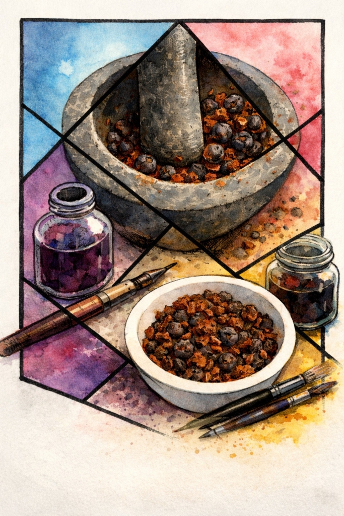 Deshalb habe ich angefangen mit Naturmaterialien Tinte selber herzustellen von Rote Beete, Kurkuma, Schlehen über Malve bis hin zu Kreide und Kohle. Aber auch diese haben einen großen Nachteil, sie sind nicht lichtecht und kaum berührt Kurkuma das Papier, verblasst es auch schon wieder und ist nach ein paar Tagen kaum noch zu sehen.